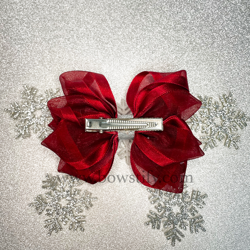 Christmas Snowflake Red Stacked Hair Bow