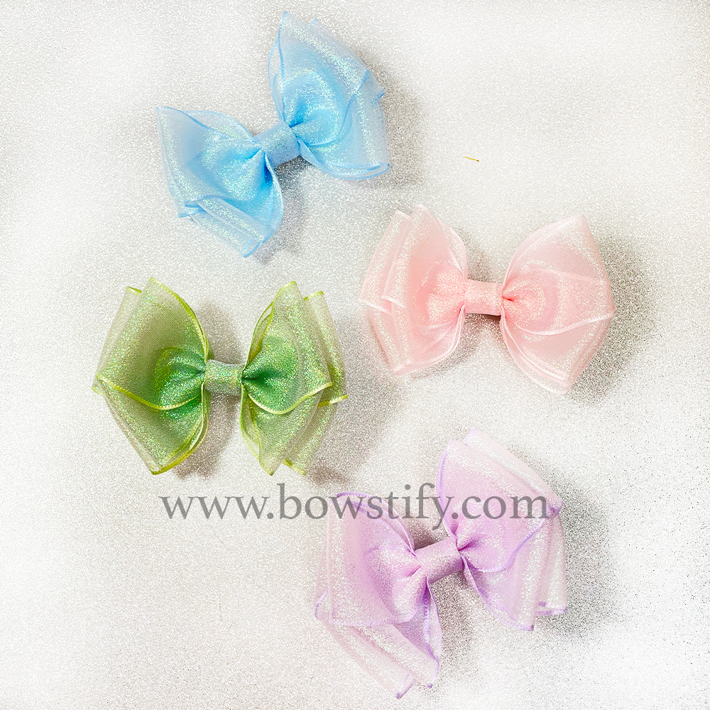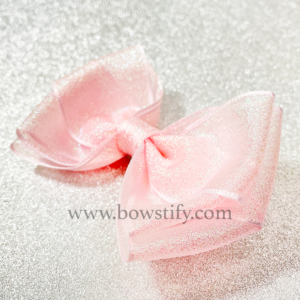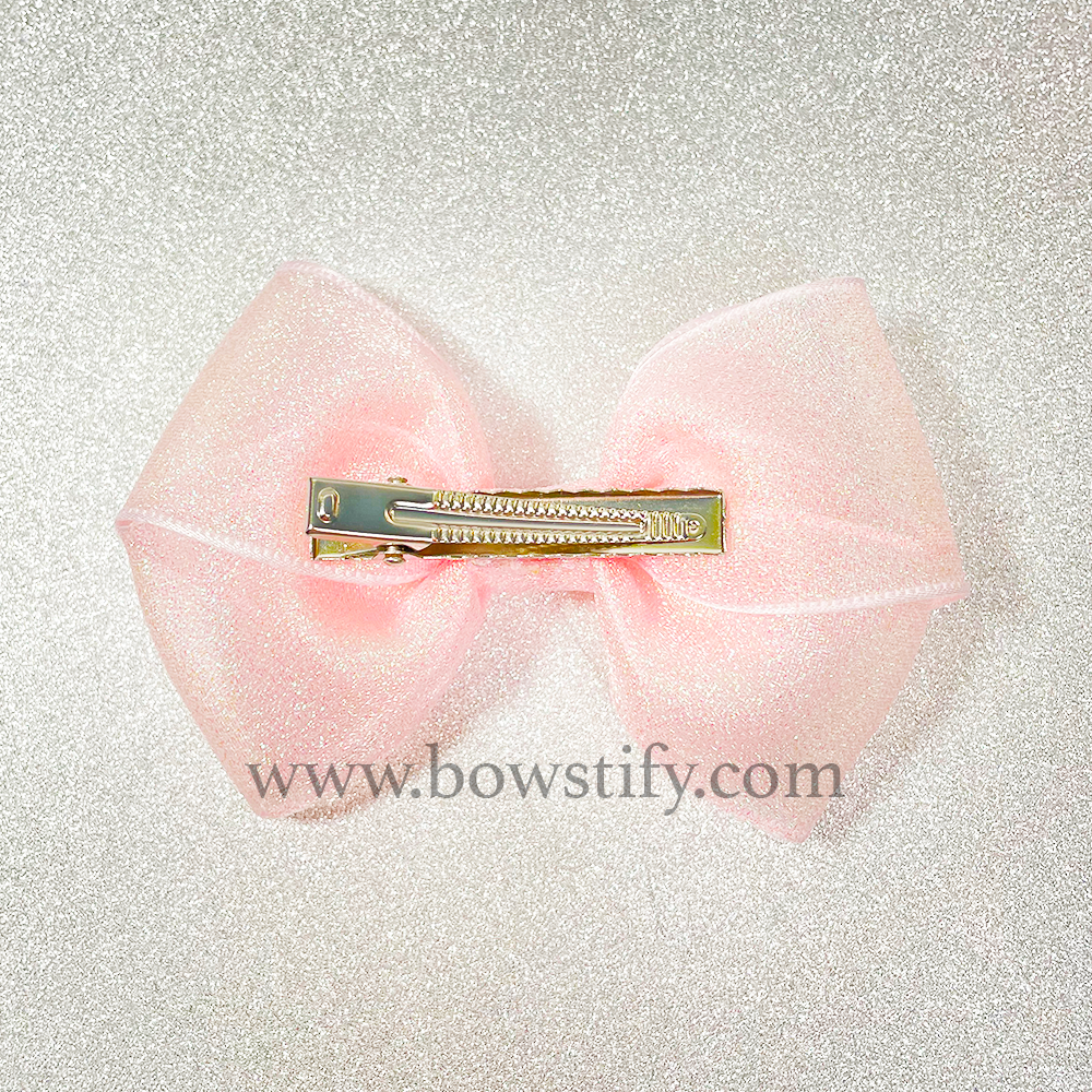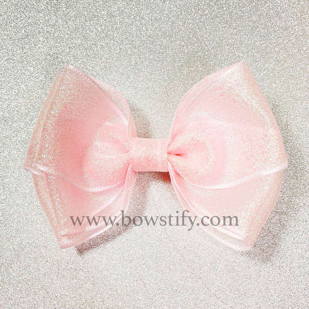 Double Organza Rose Petal Pink Glitter Ribbon Hair Bow