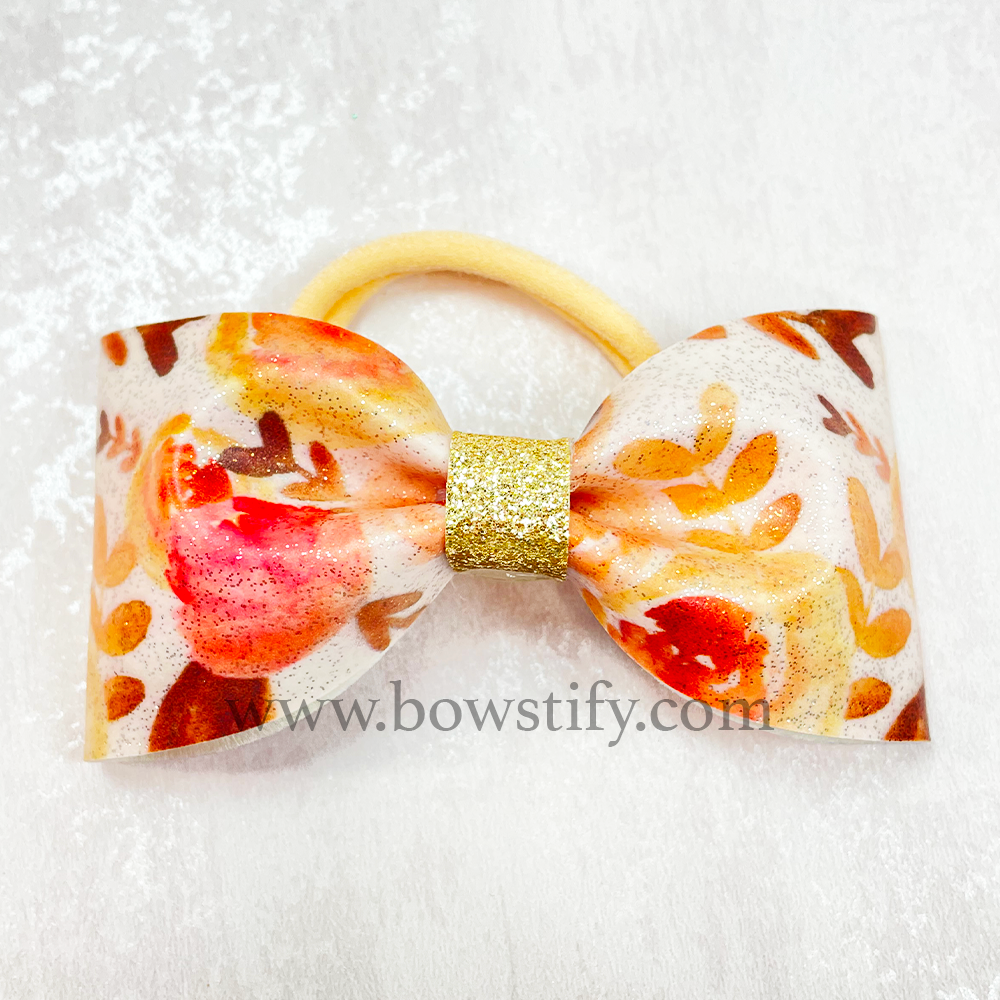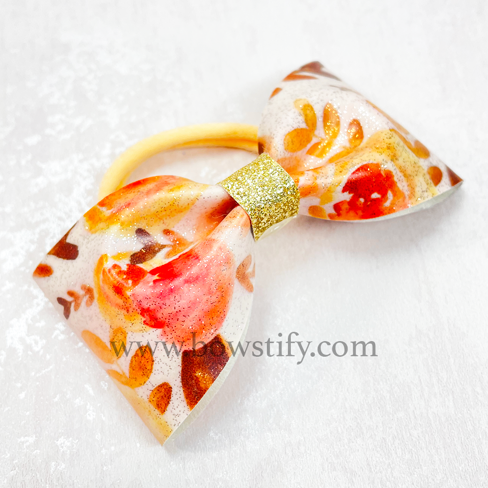 Faux leather Spring Flower Classic Hair Bow Bobble
