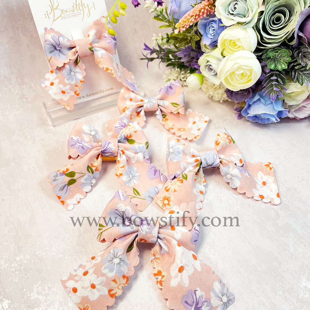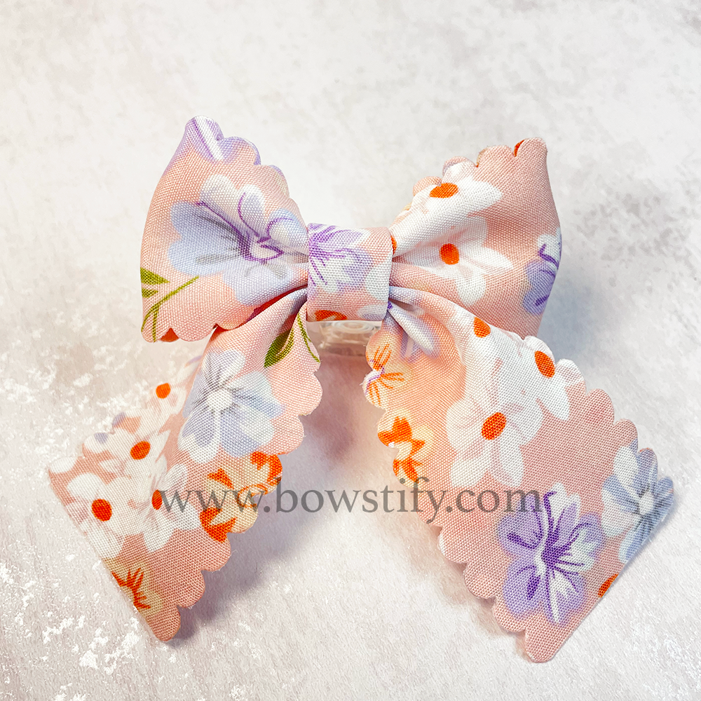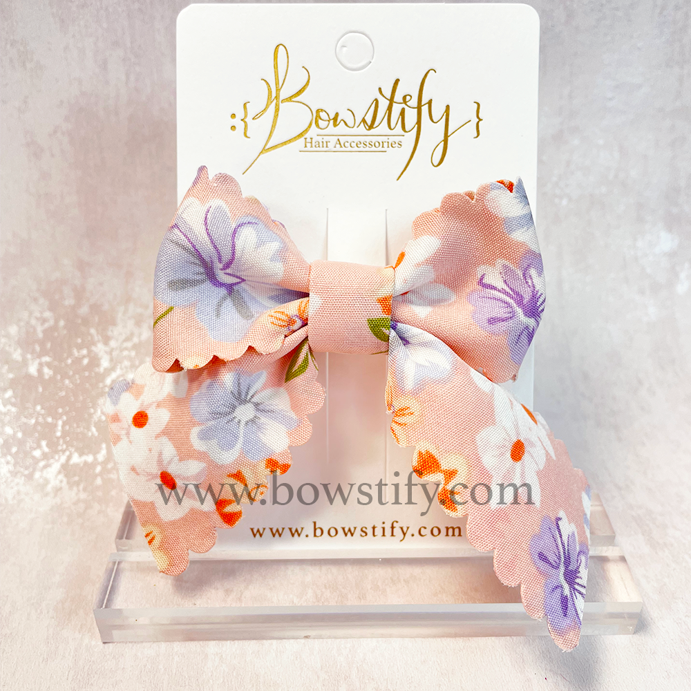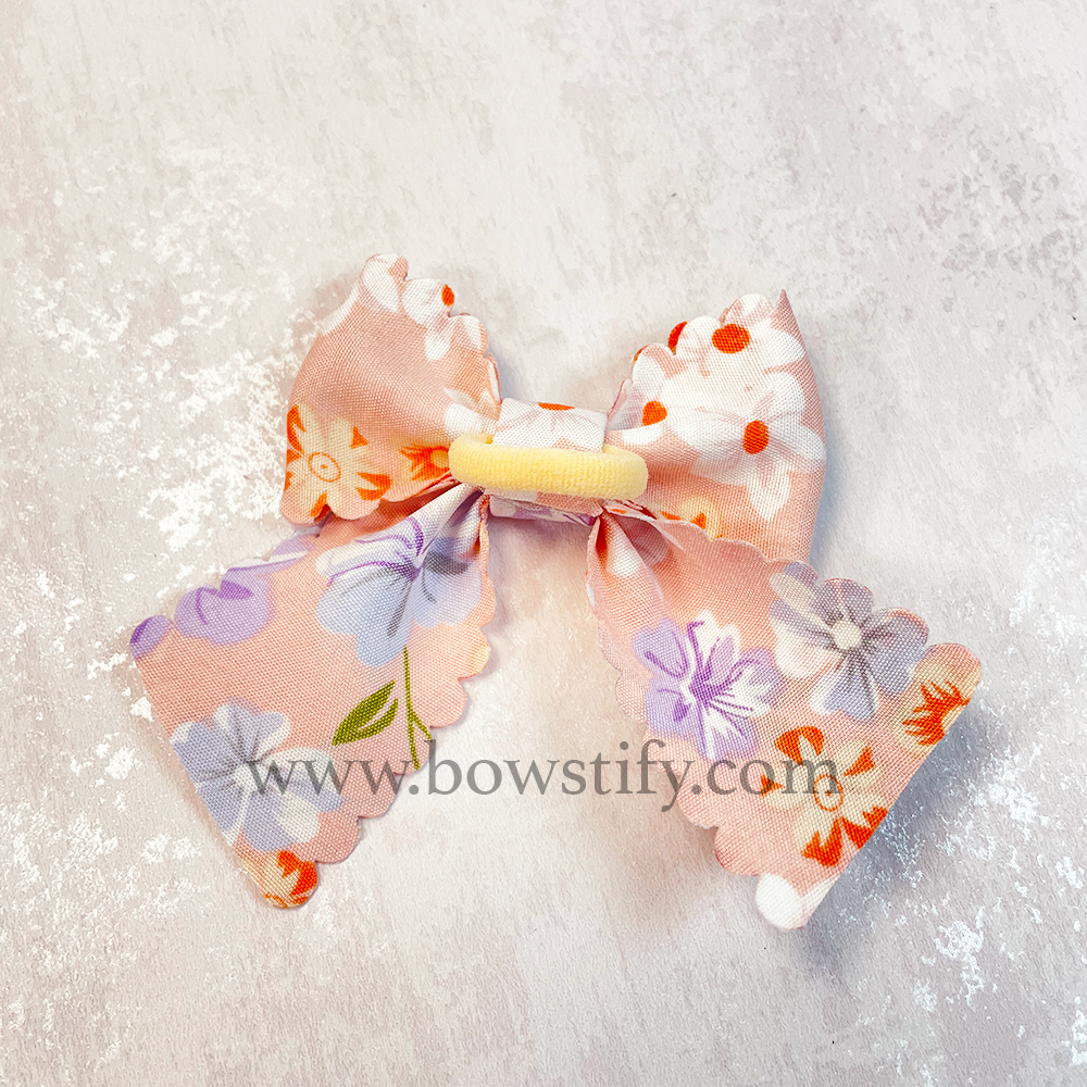 Pink Floral Basic Tails Down Hair Bow Bobble