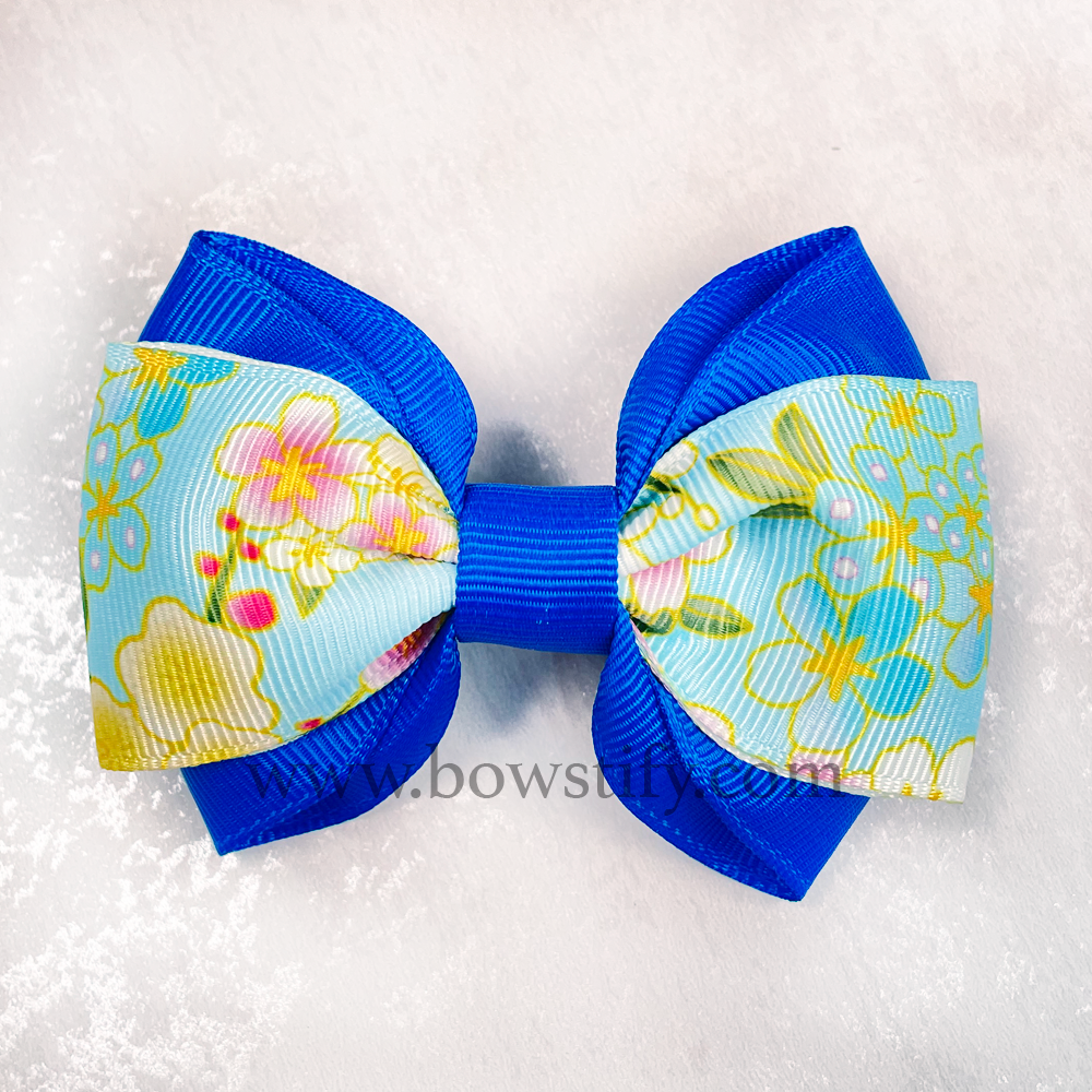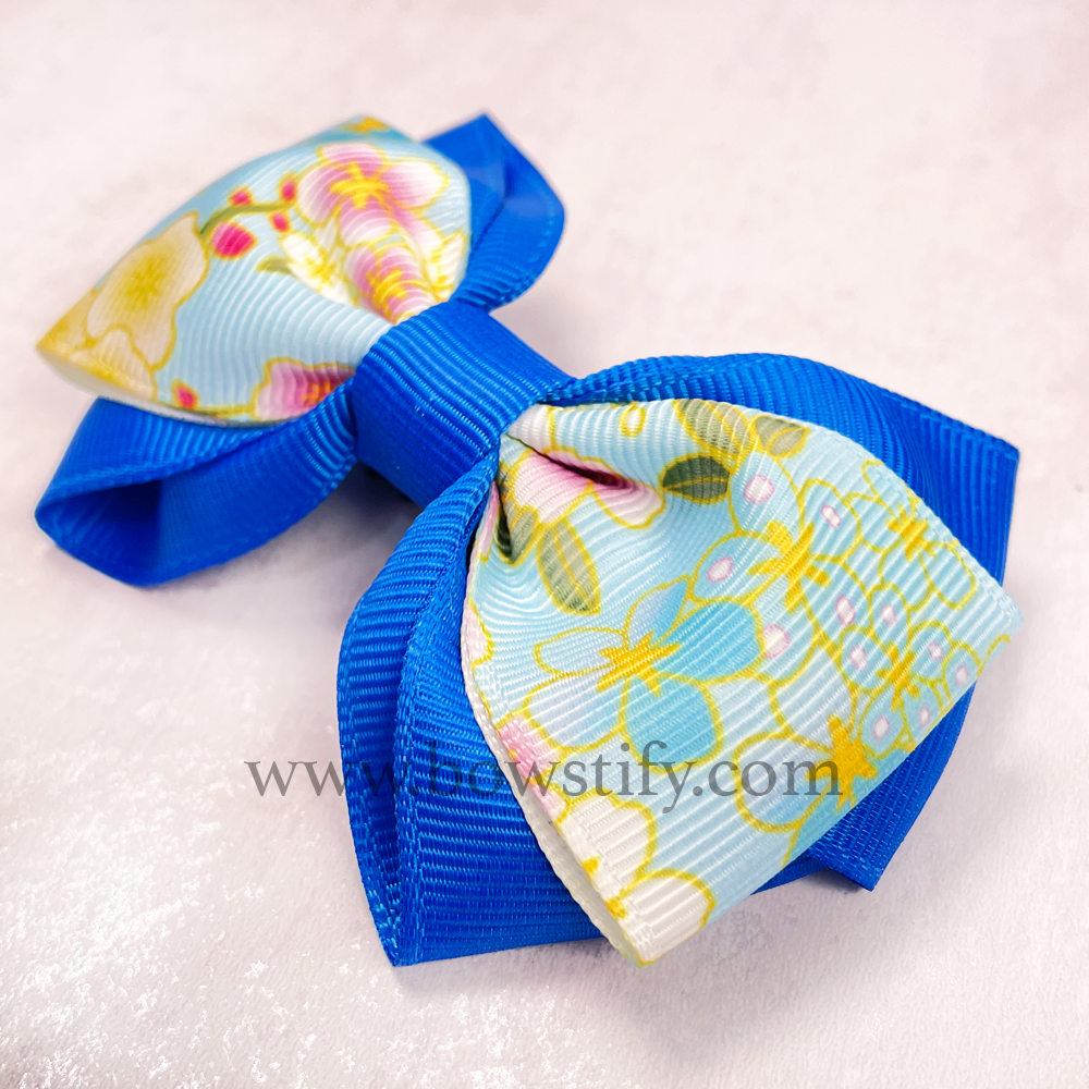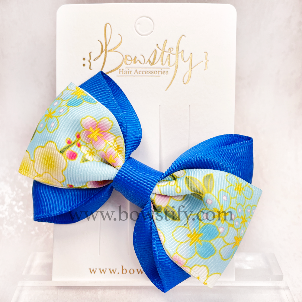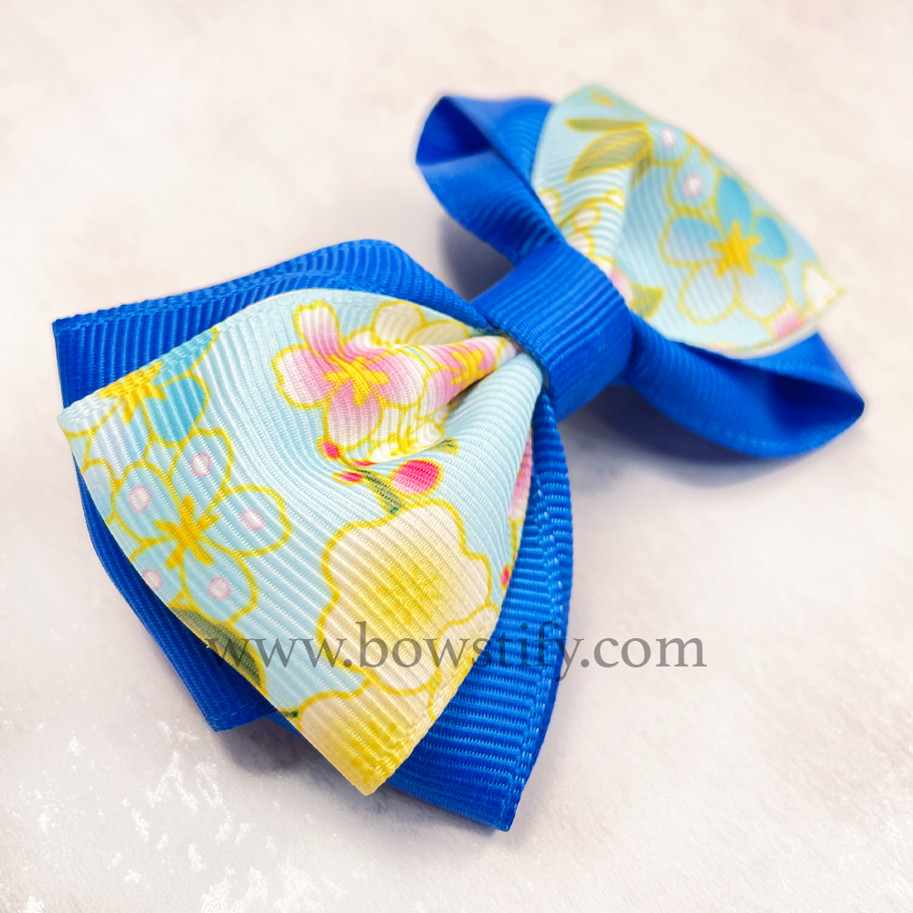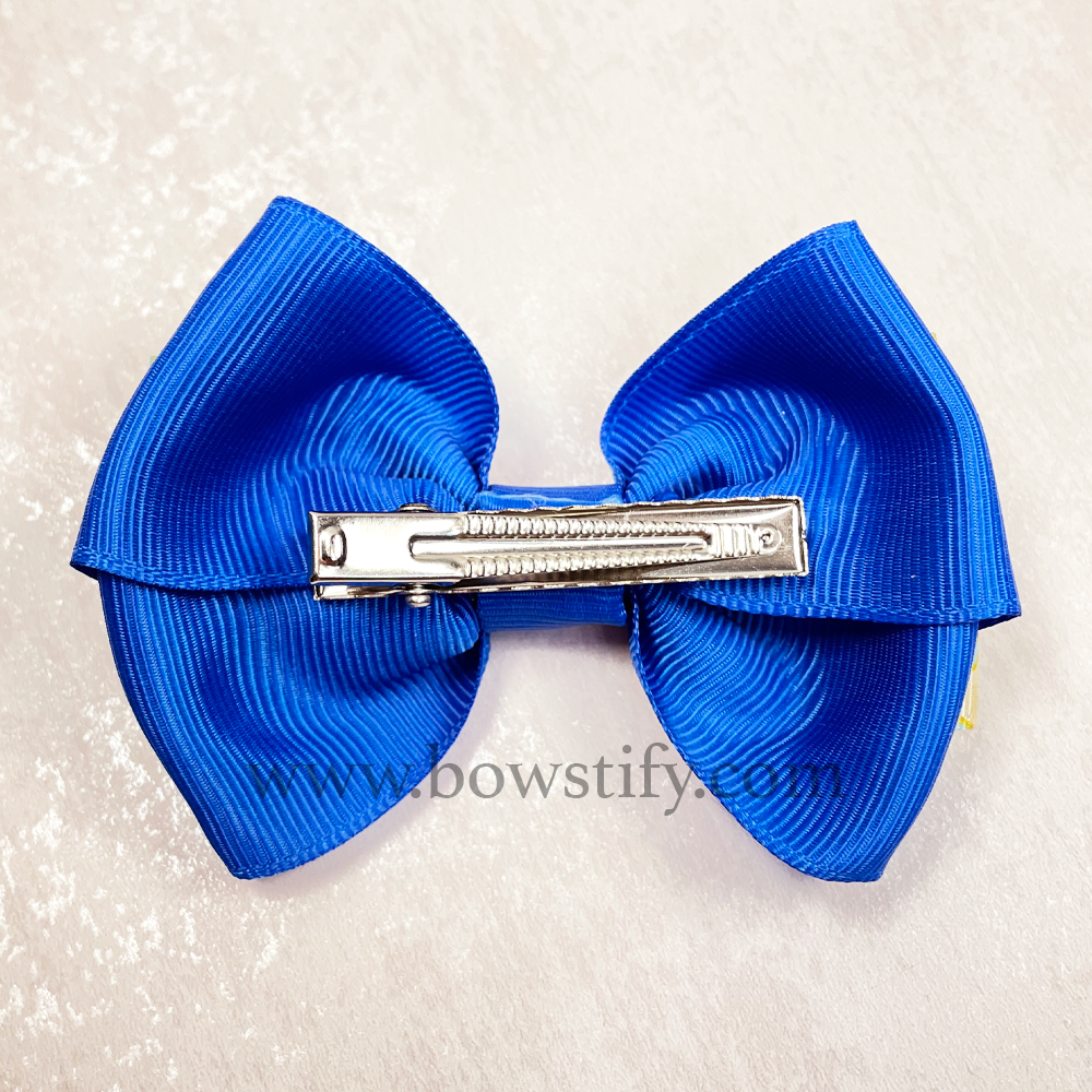 School Bright Blue Floral Cross Hair Bow