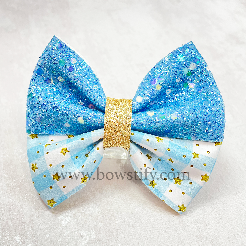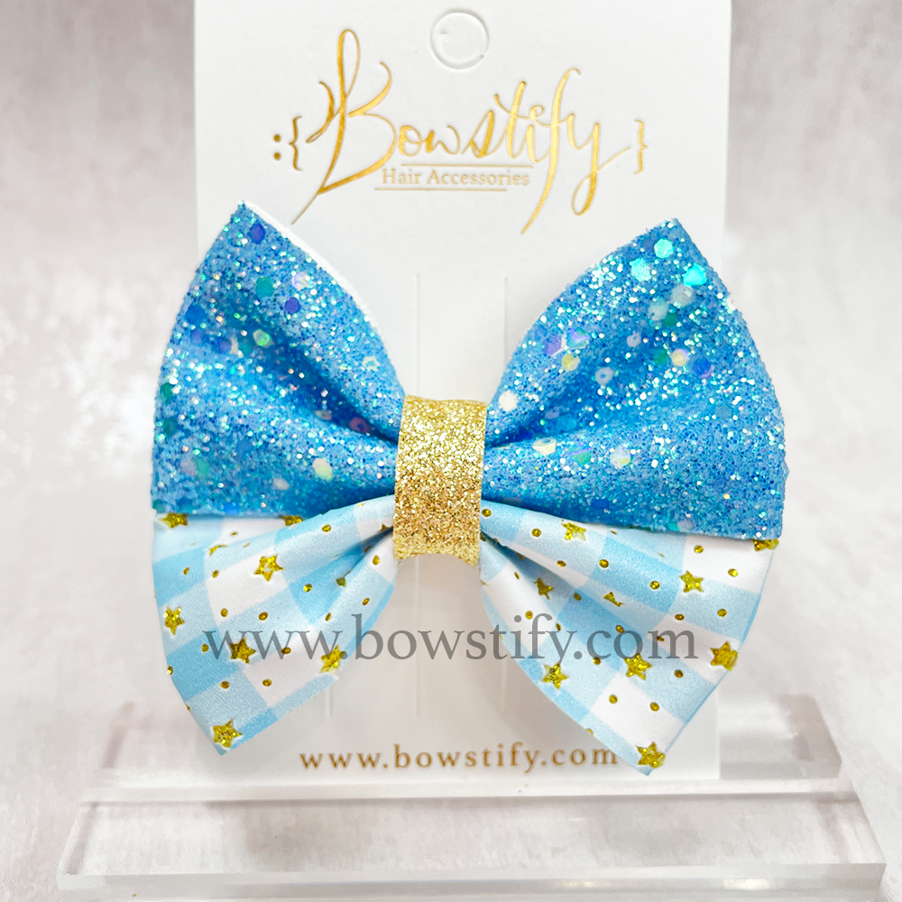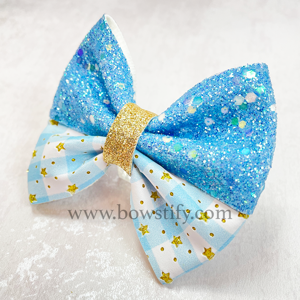 Faux Leather Blue Glitter Starlight Classic Hair Bow Hair Clip