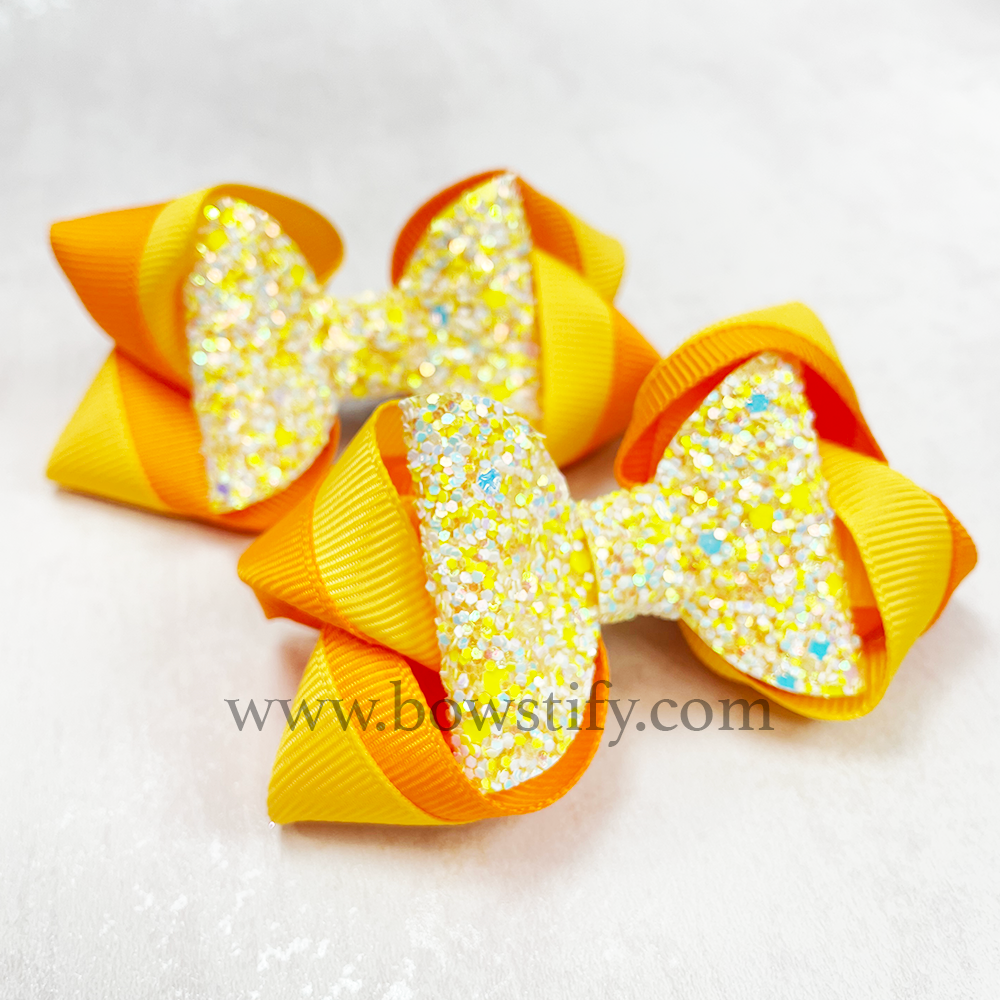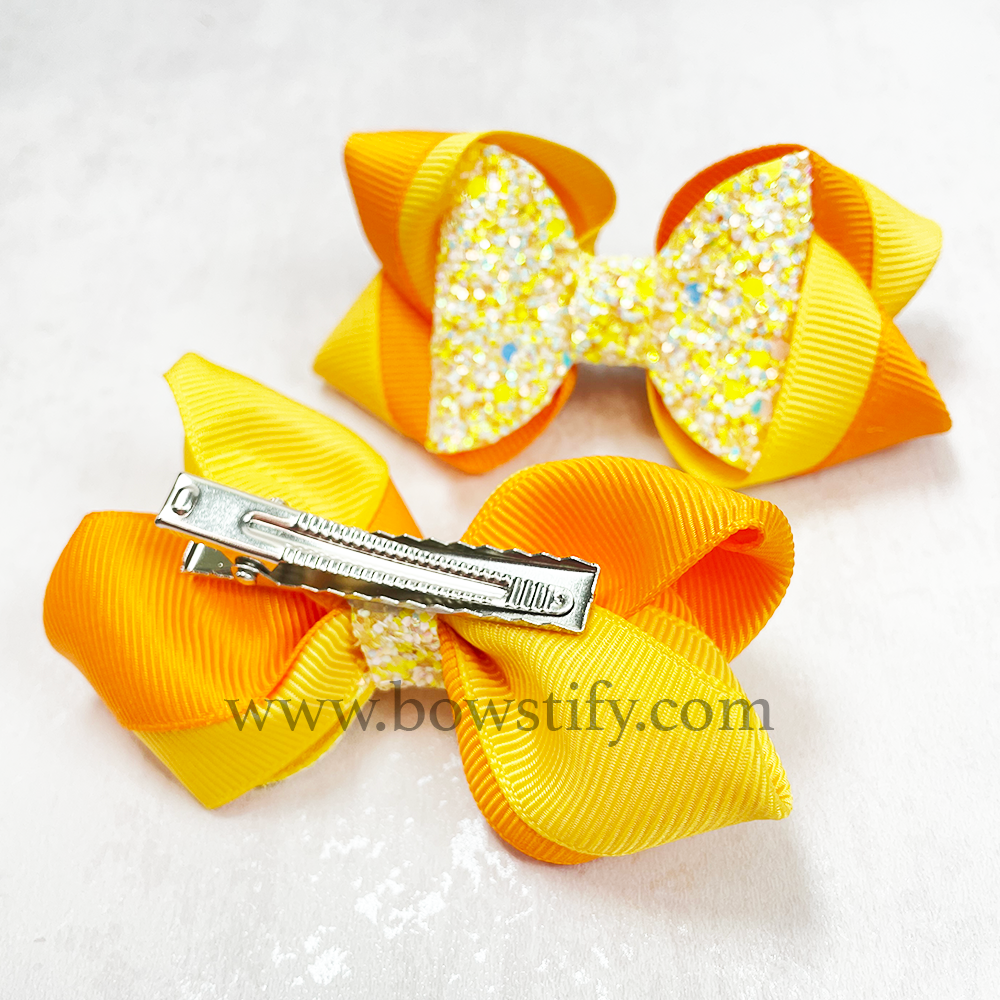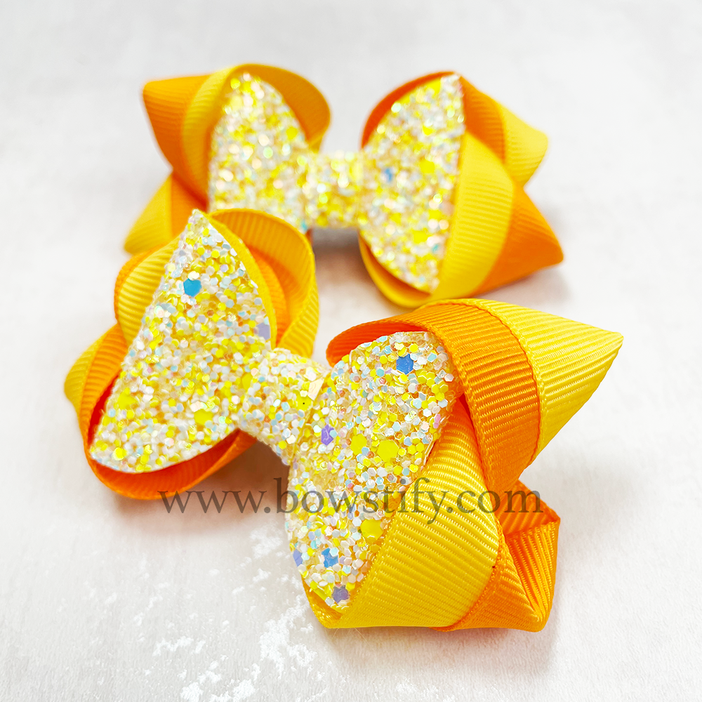 Orangesicle Leather Glitter Dolly Inside-Out Hair Bow (2 Pack)