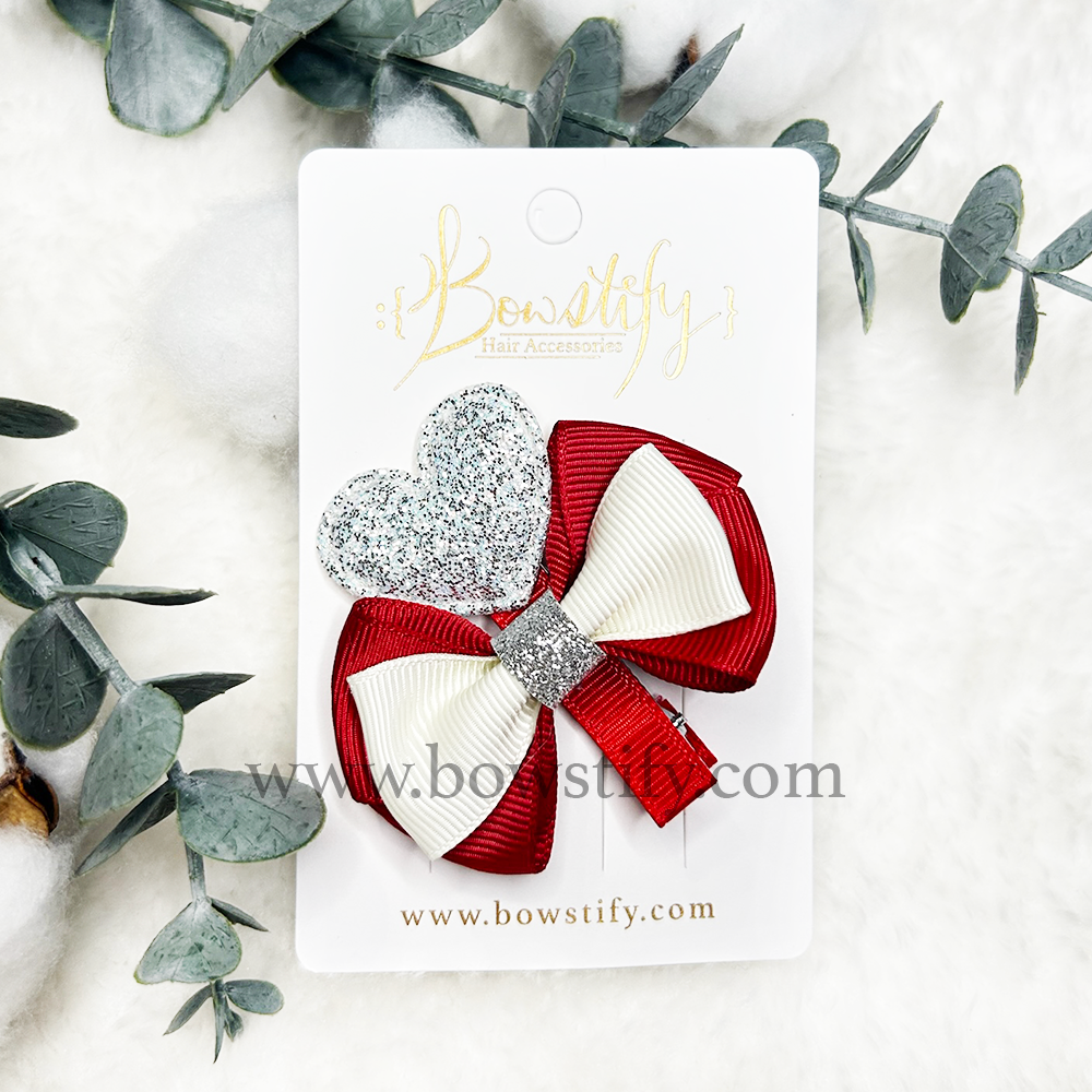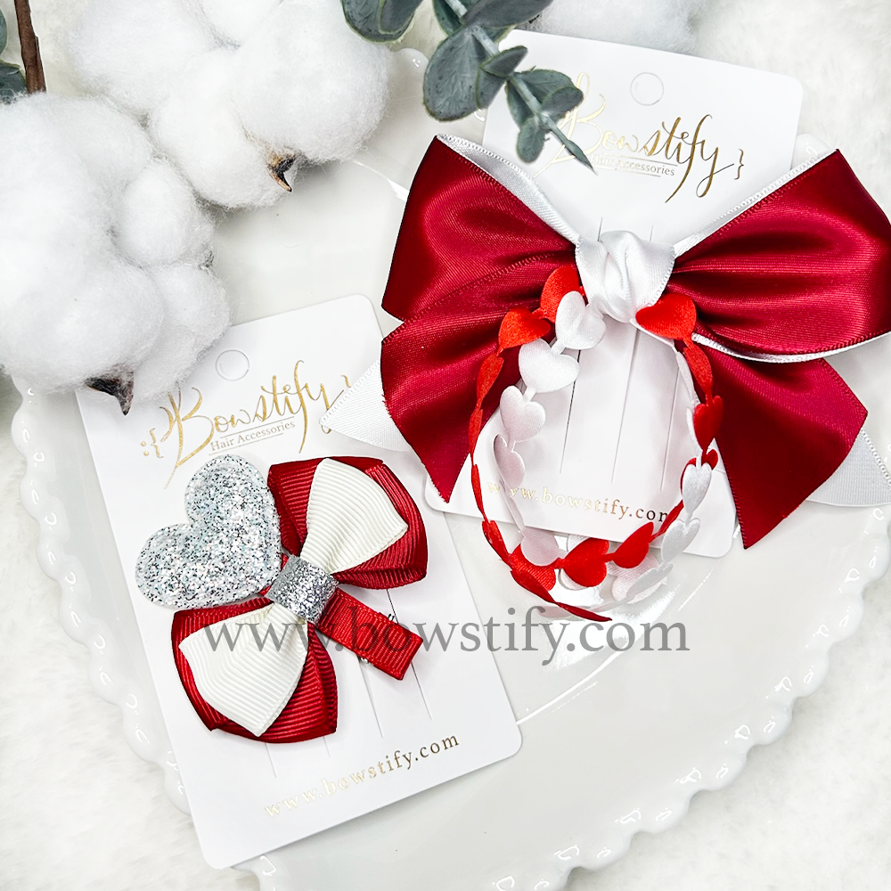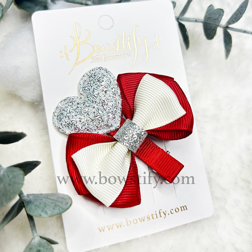 Red and White 2 Layers Love Heart Hair Clip | Dearly Beloved Valentine's Bow