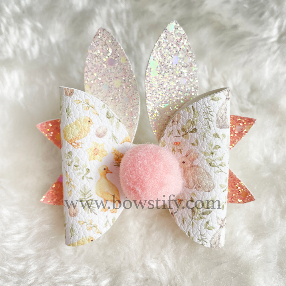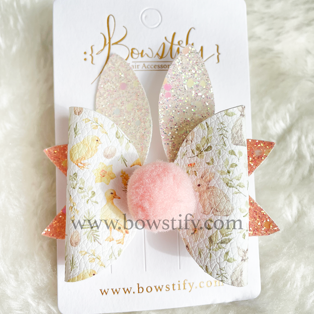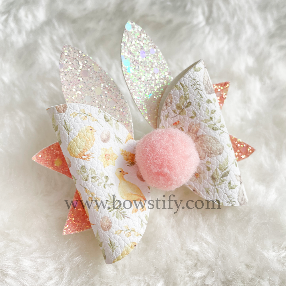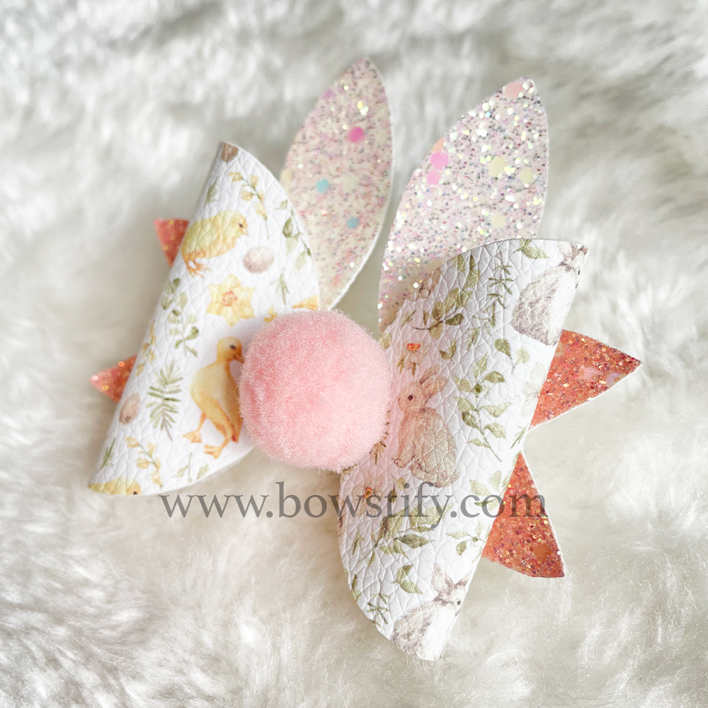 Faux Leather Glitter Easter Bunny and Chicks Dolly Hair Bow Hair Clip