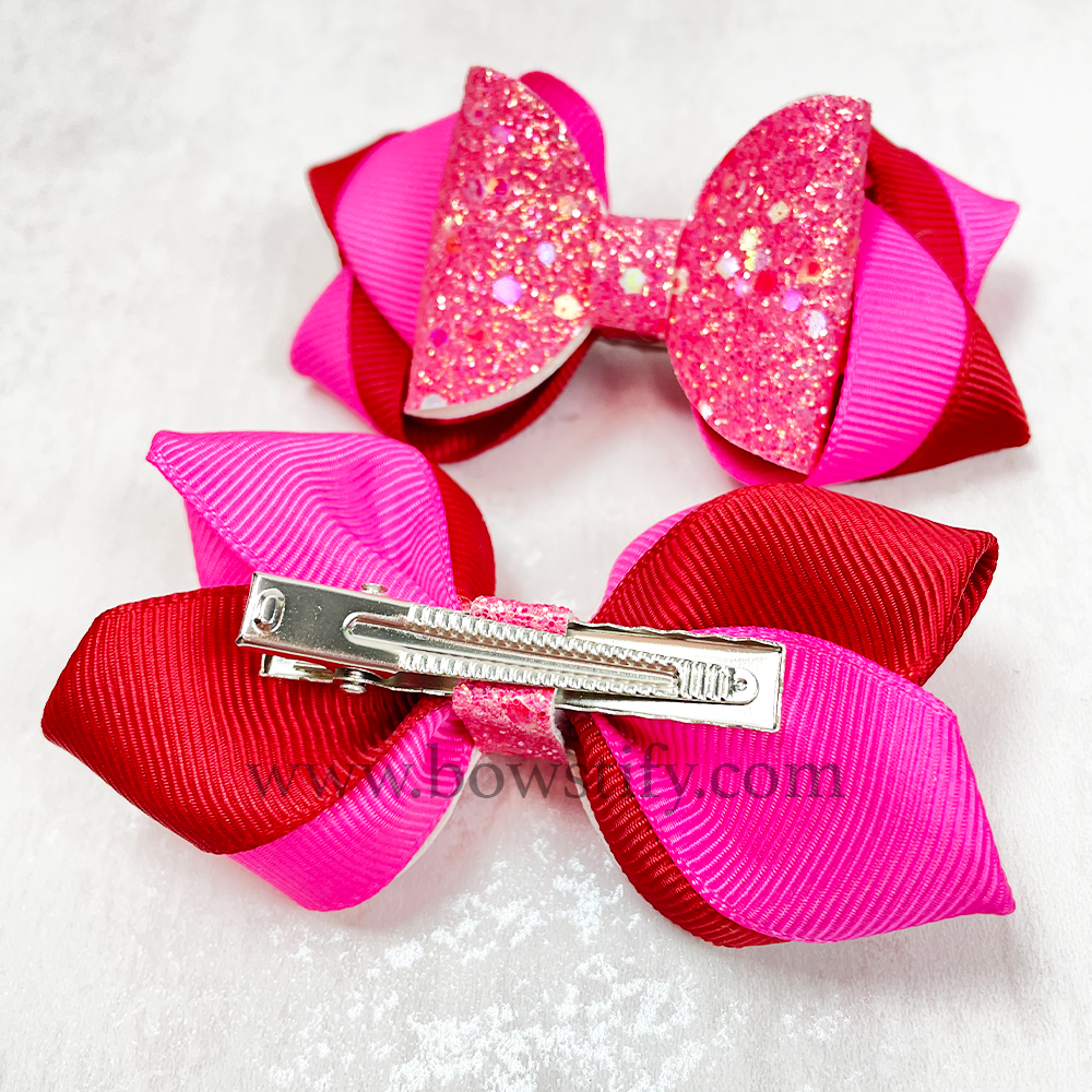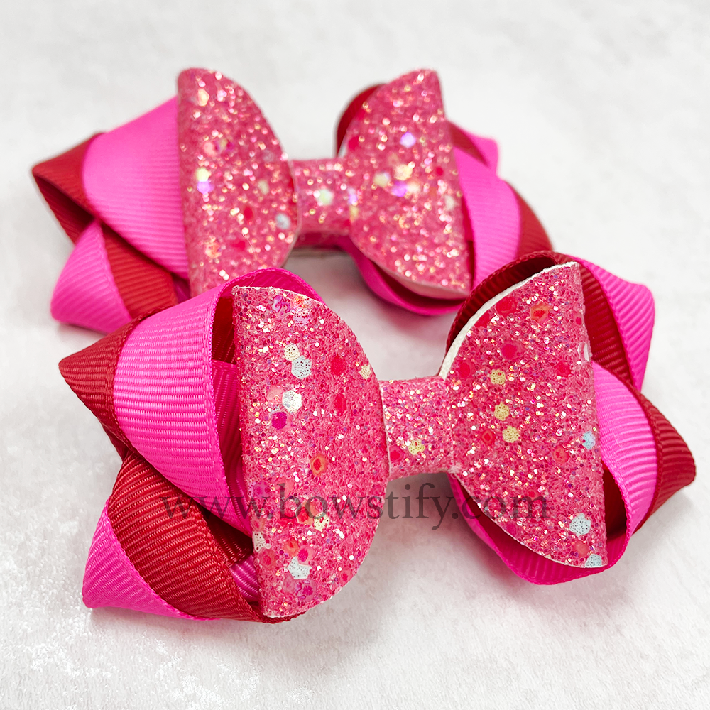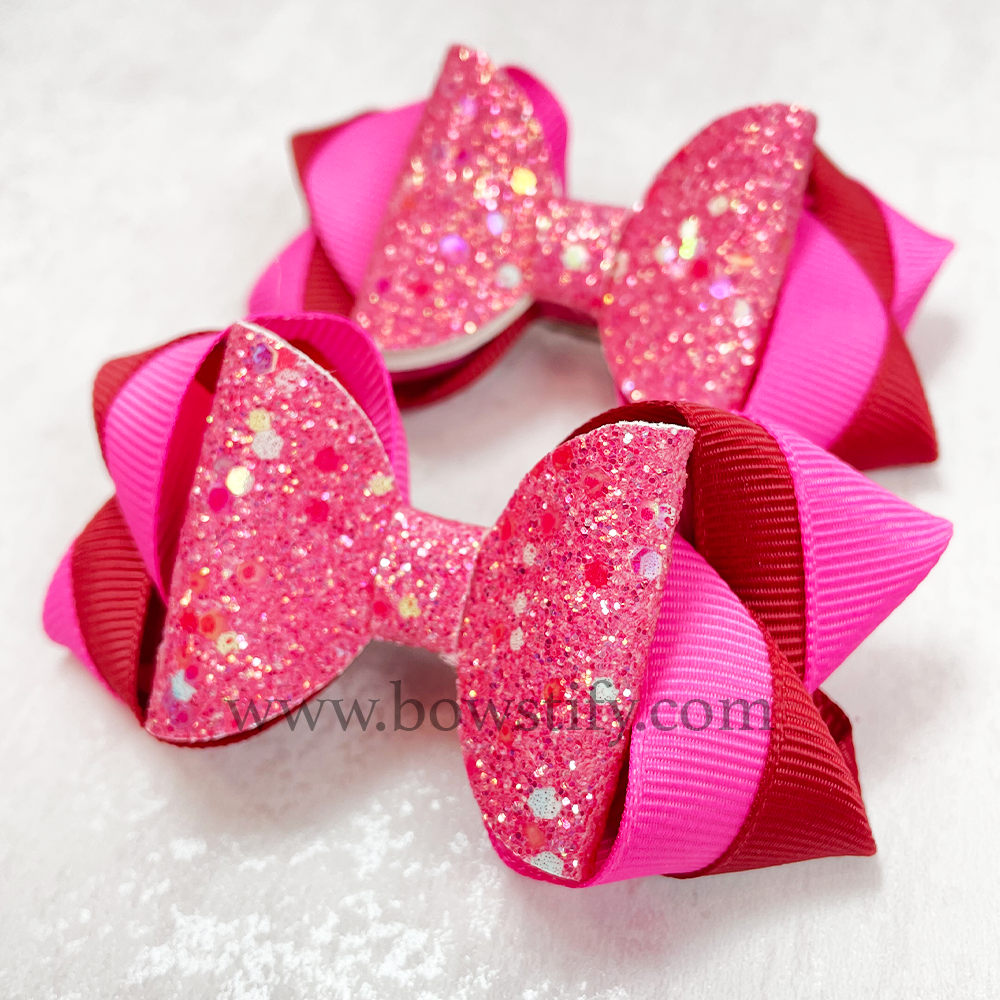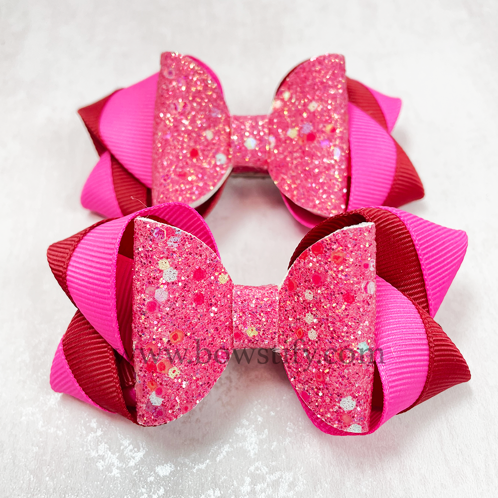Maroon Red Leather Glitter Dolly Inside-Out Hair Bow (2 Pack)
