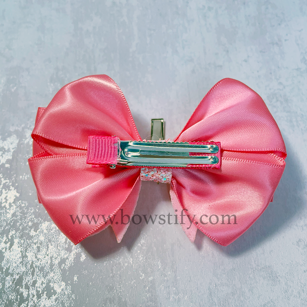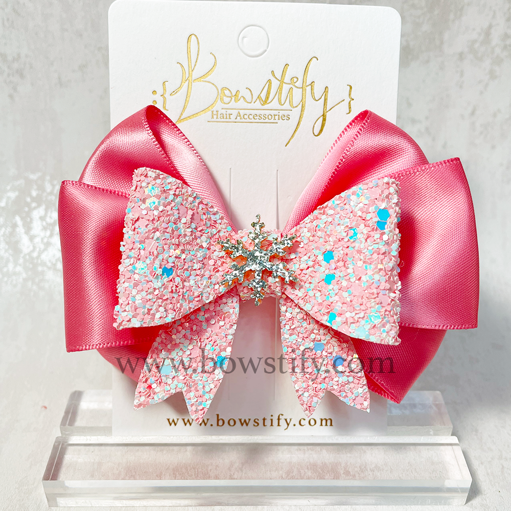 Winter Fairy Millennial Pink 2 Layers Leather Glitter Tails Down Bow